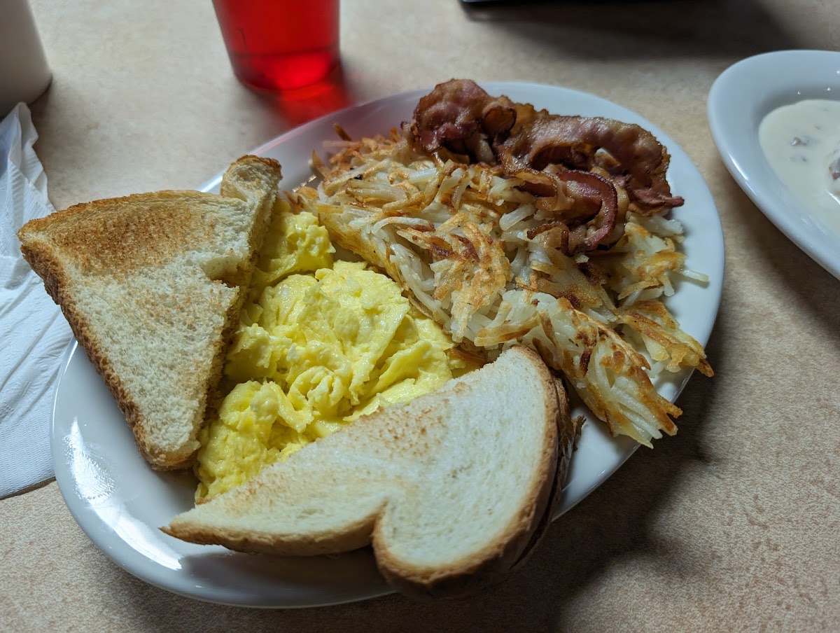 Very good breakfast everytime. Love the biscuits and gravy but can only eat a 1/2 order. Pancakes are huge and fluffy. Great service! Rivermen hockey theme is great. And you can play pool!