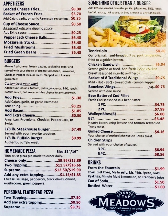 Meadows Avenue Tap Menu